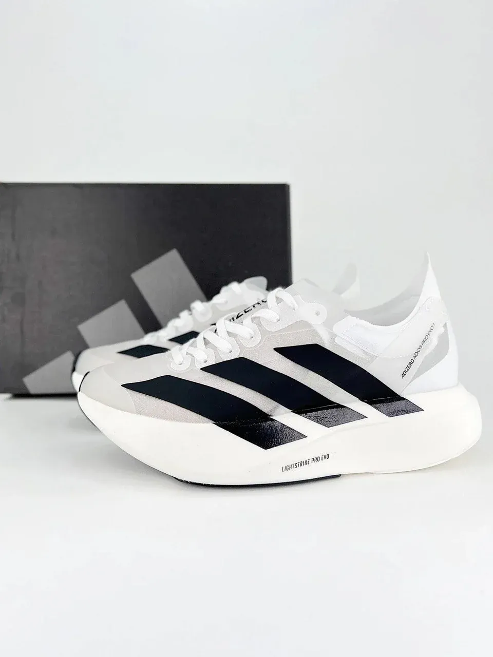 O Adizero Adios Pro Evo 1 destaca-se por ser 40% mais leve que qualquer outro tênis de corrida da Adidas, pesando apenas 138 g. A combinação da espuma Lightstrike Pro com a estrutura de haste de TPU curvadas oferece uma corrida responsiva e eficiente. O design do cabedal e da sola contribui para a redução de peso, mantendo o desempenho e a durabilidade.