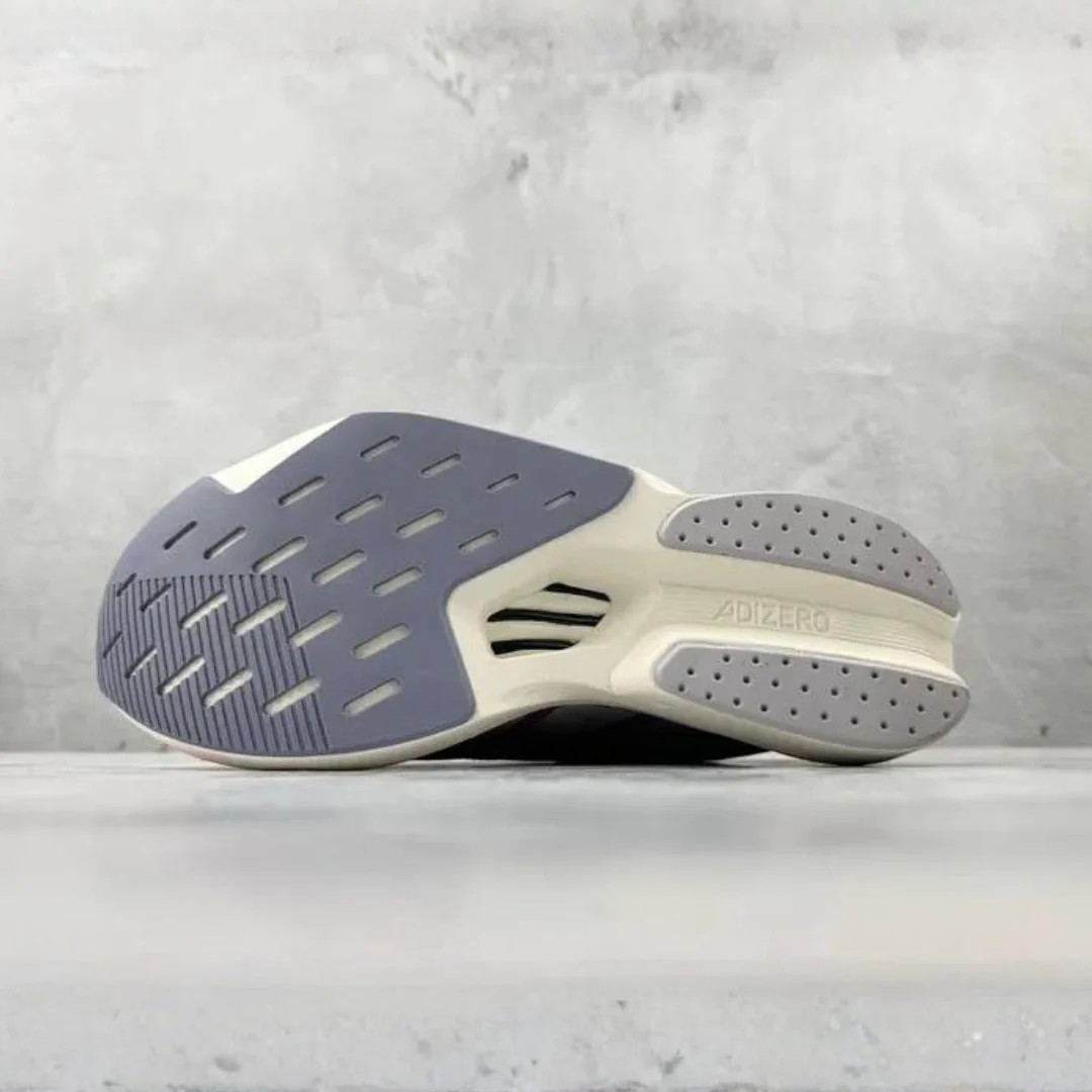 Do início ao fim, esses tênis de corrida adidas se destacam onde a borracha literalmente encontra a estrada, amarre e persiga um novo PB em sapatos construídos para velocidade leve.