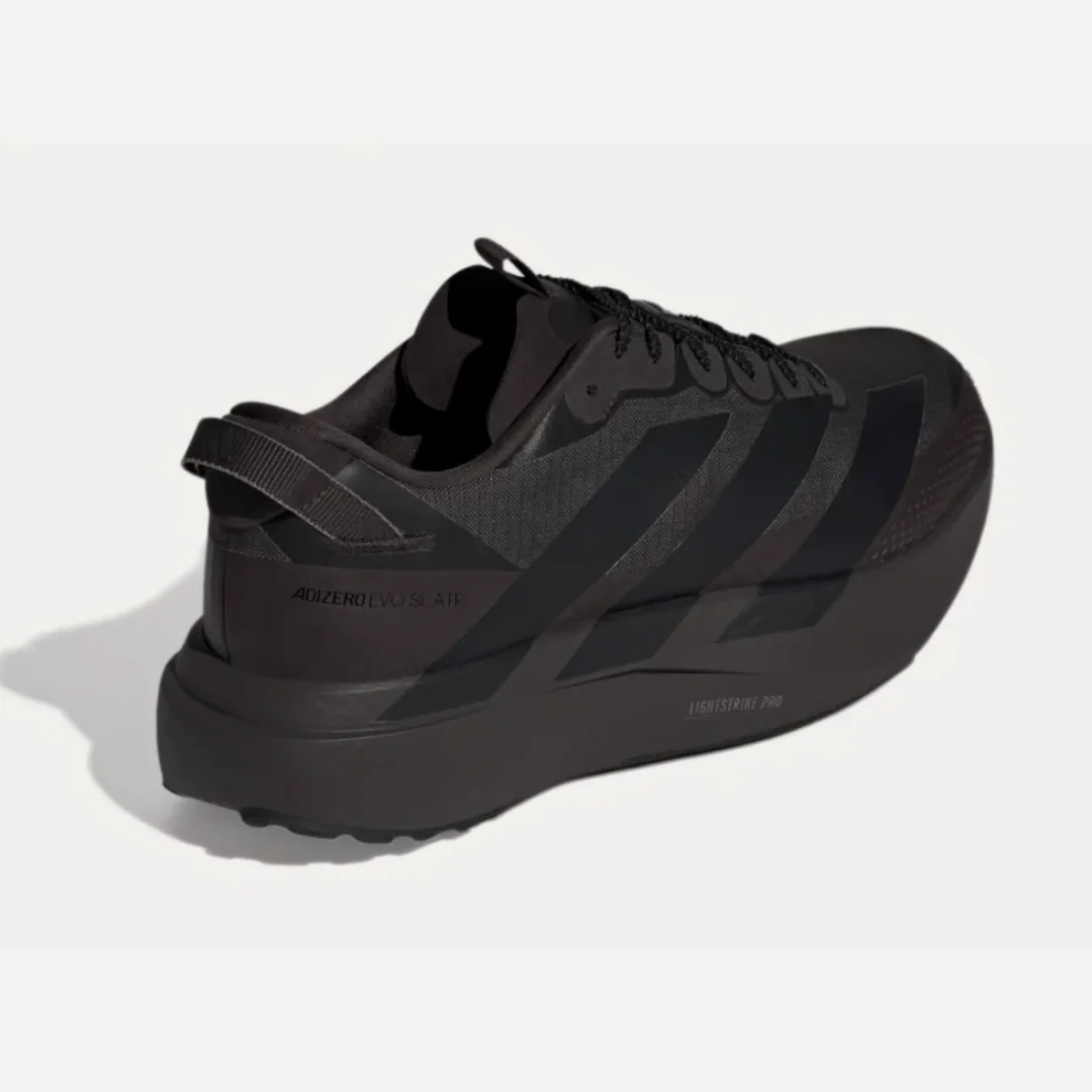 Esses tênis de modelagem padrão têm tecido malha elástica ripstop e um protetor contra lama que proporciona repelência à água e proteção contra os elementos, enquanto a assinatura ADIZERO sling launch oferece fechamento do calcanhar adicional.