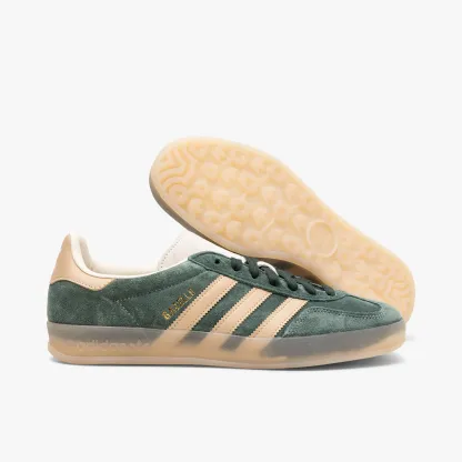 Originally created for indoor training in the '70s, this classic silhouette comes back today as a fashion-forward everyday style. The adidas Originals Gazelle Indoor is constructed with a mixed leather and synthetic upper. Serrated Three Stripes and T-toe detailing tie the look together with adidas heritage. Foam cushioning in the midsole and a translucent rubber outsole provide oft-relied upon comfort and traction.