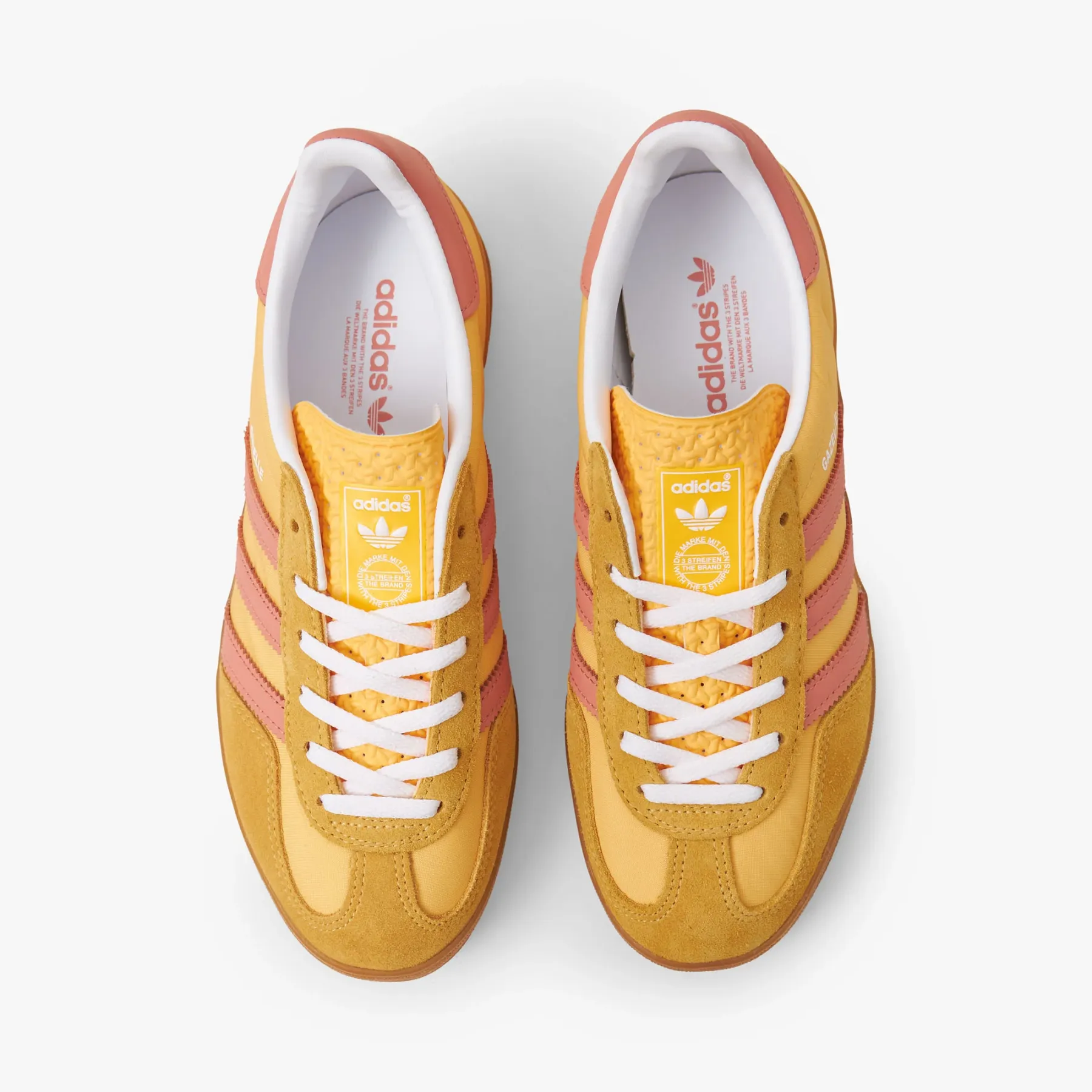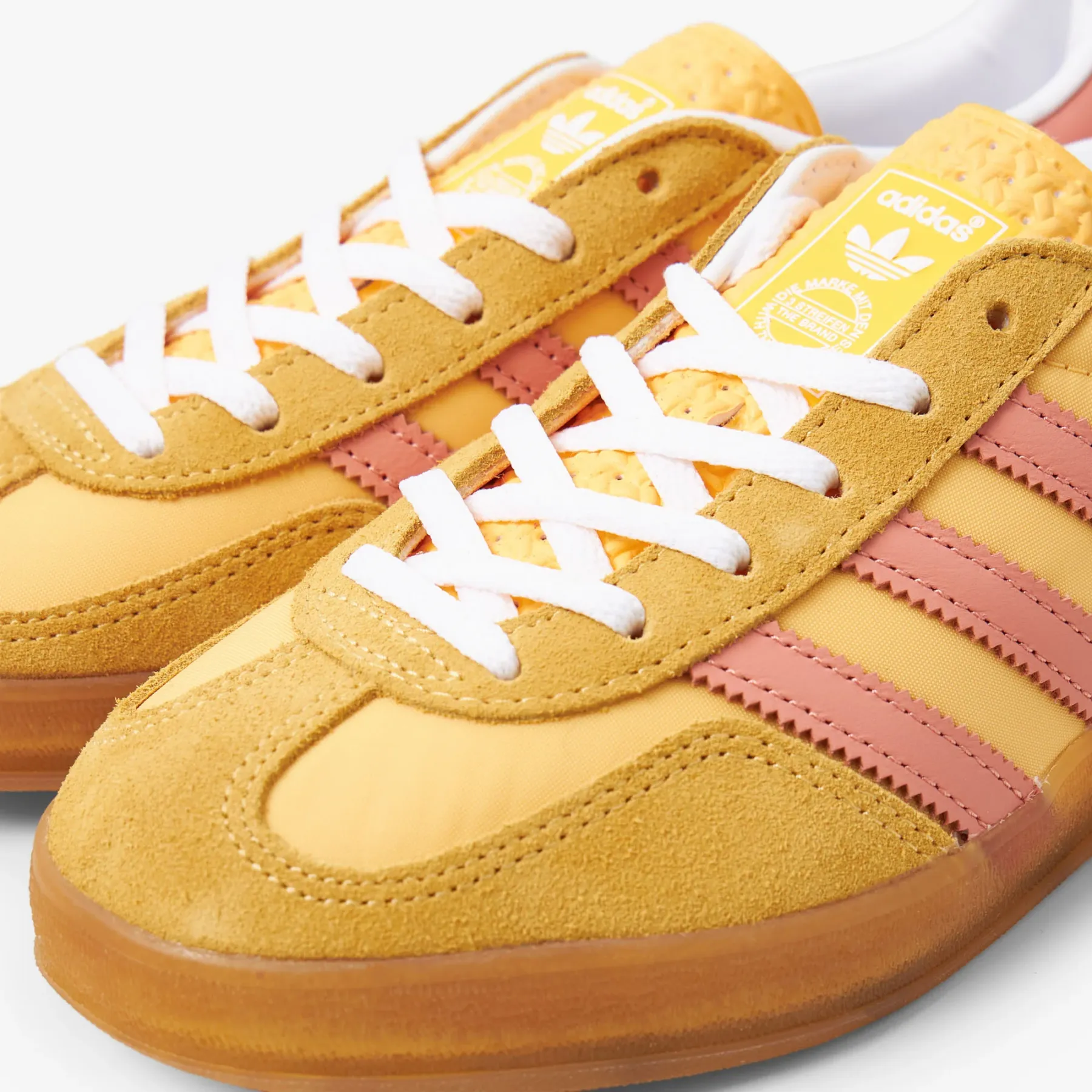 First debuted in the ‘70s, the adidas Originals Women’s Gazelle Indoor has been a staple for indoor sports fans and casual enthusiasts alike. From music to fashion, this low-cut silhouette has left its mark and this new iteration features a durable nylon construction that’s detailed with luxe suede overlays. Classic branding decorates the sidewalls, tongue and heel, plus a leather sockliner offers premium comfort while on-foot. Foam cushioning also helps dampen impacts during wear, and a gum rubber outsole completes the design with traction underfoot.