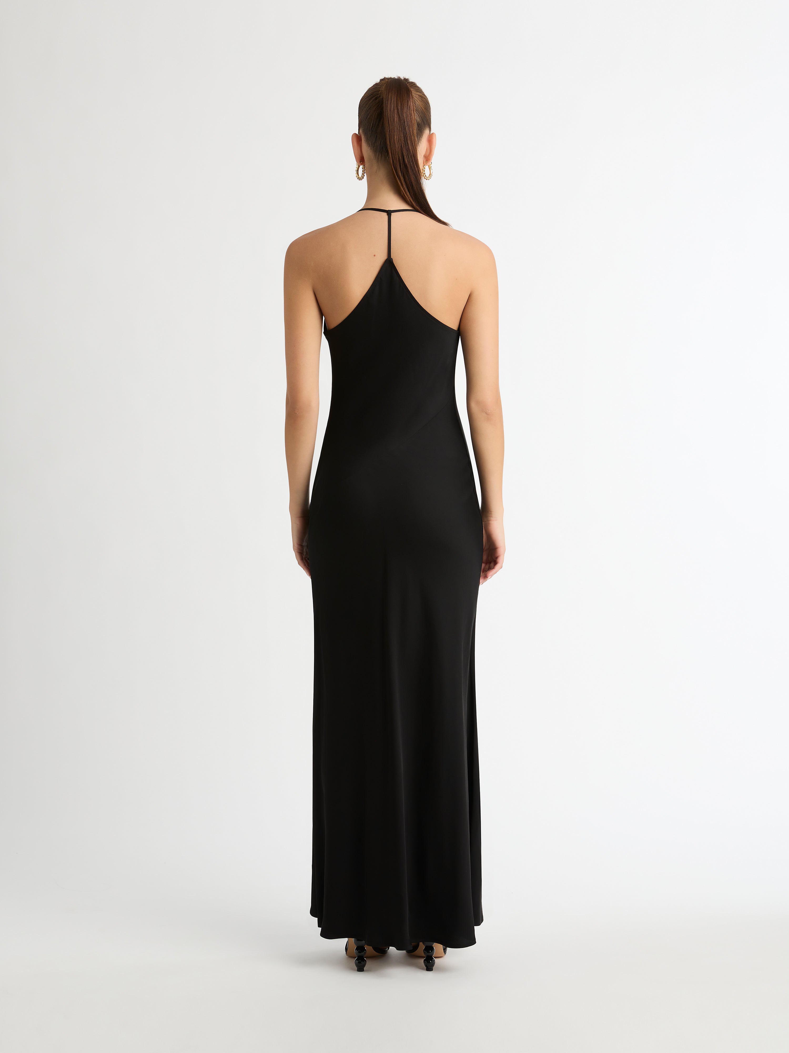 Set the mood with effortless glamour. Introducing the Ivy Draped Dress - showcasing a luxe satin fabric, cowl neckline and fixed straps. Pair with our Portofino Earrings to complete the look.