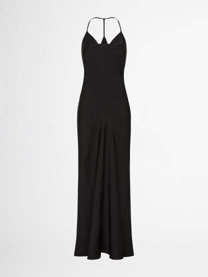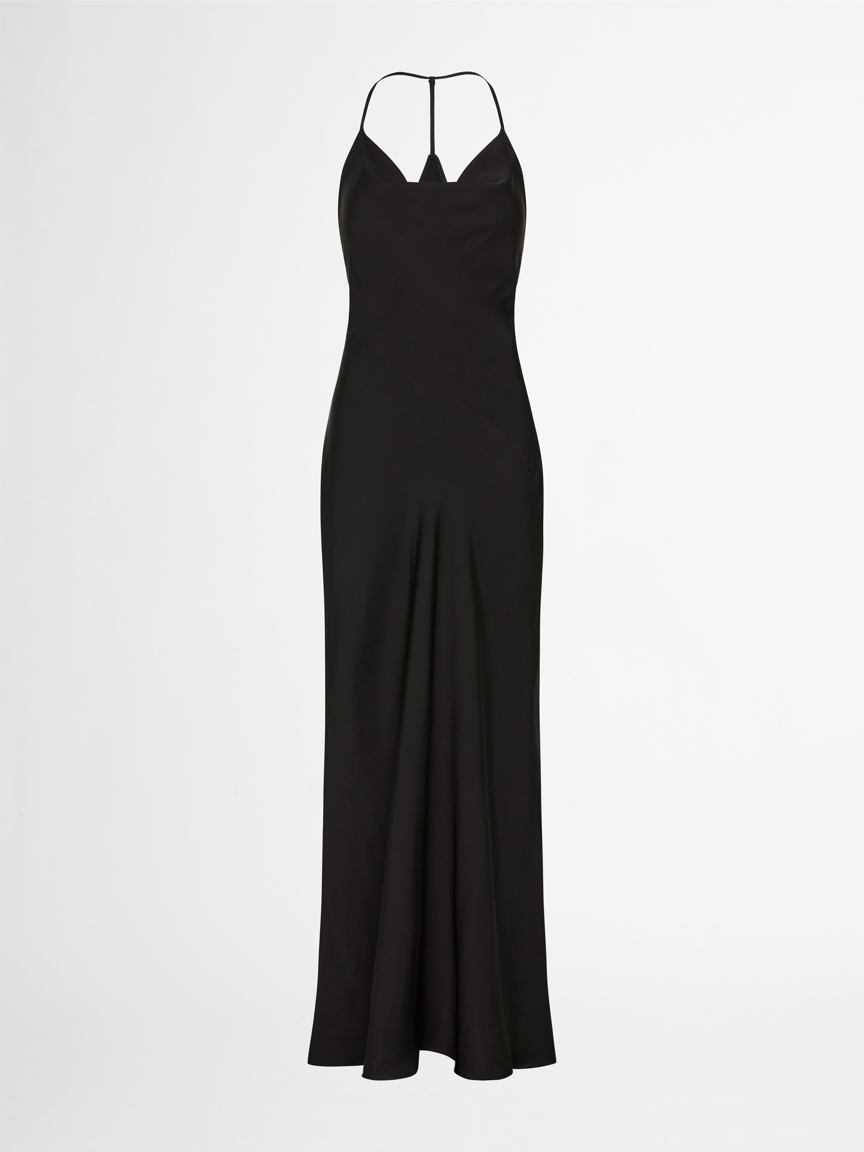 Bias cut satin non stretch fabrication cowl neckline Fixed thin straps Invisible side seam zip closure Midi length skirt 100% Polyester Cold Hand Wash Style: 1005895