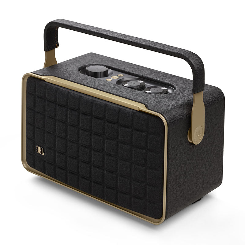 The JBL Authentics 300 delivers iconic style inspired by classic JBL retro designs, in a portable home speaker that looks great in any decor. It will easily fill any space, big or small, with superior JBL sound. And the speaker��s convenient cast-aluminium handle, custom leather-like enclosure, and reimagined Quadrex grille really show the attention we paid to each visual detail, right down to the special JBL signature pattern surrounding the down firing passive radiator.
