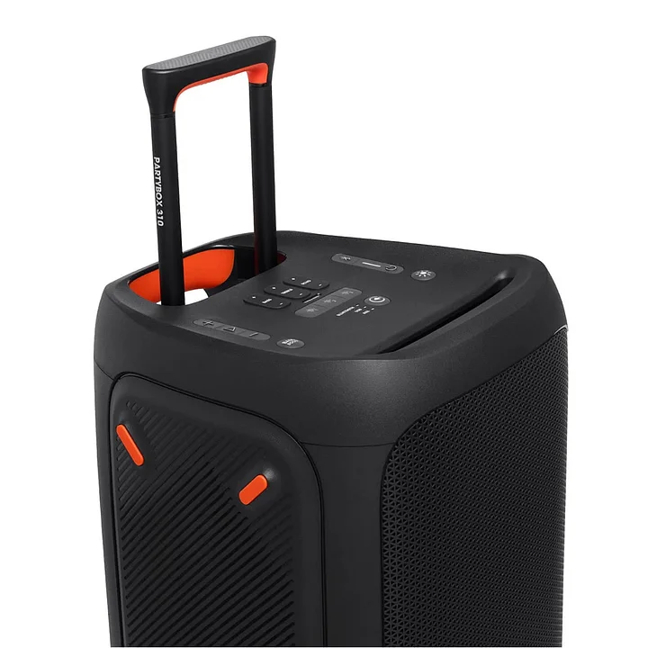 Haga que la fiesta avance con ruedas grandes. robustas y de funcionamiento suave y un asa de fA!cil agarre para transportar y colocar convenientemente el PartyBox 710 dondequiera que lo lleve la mAosica.