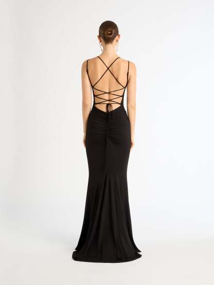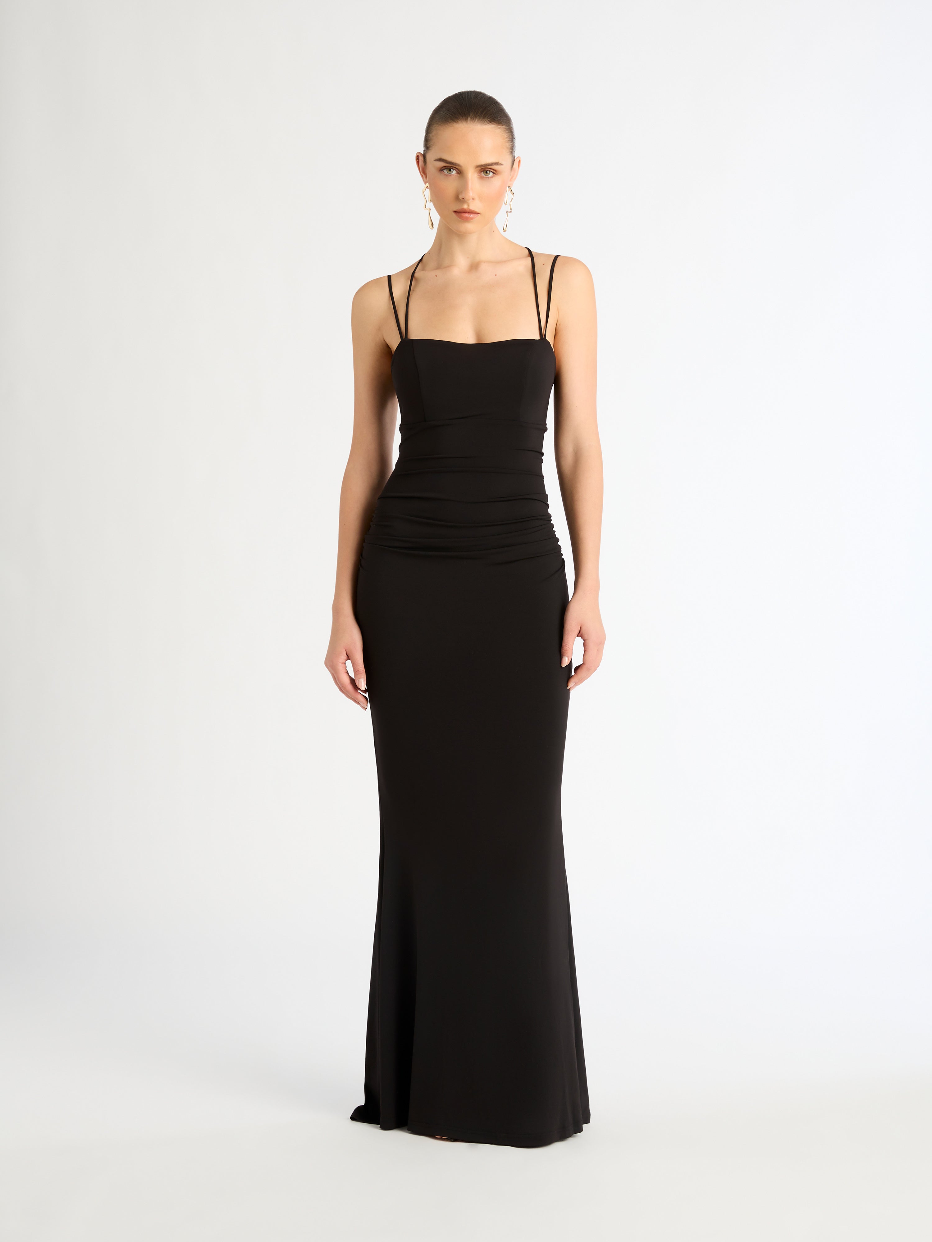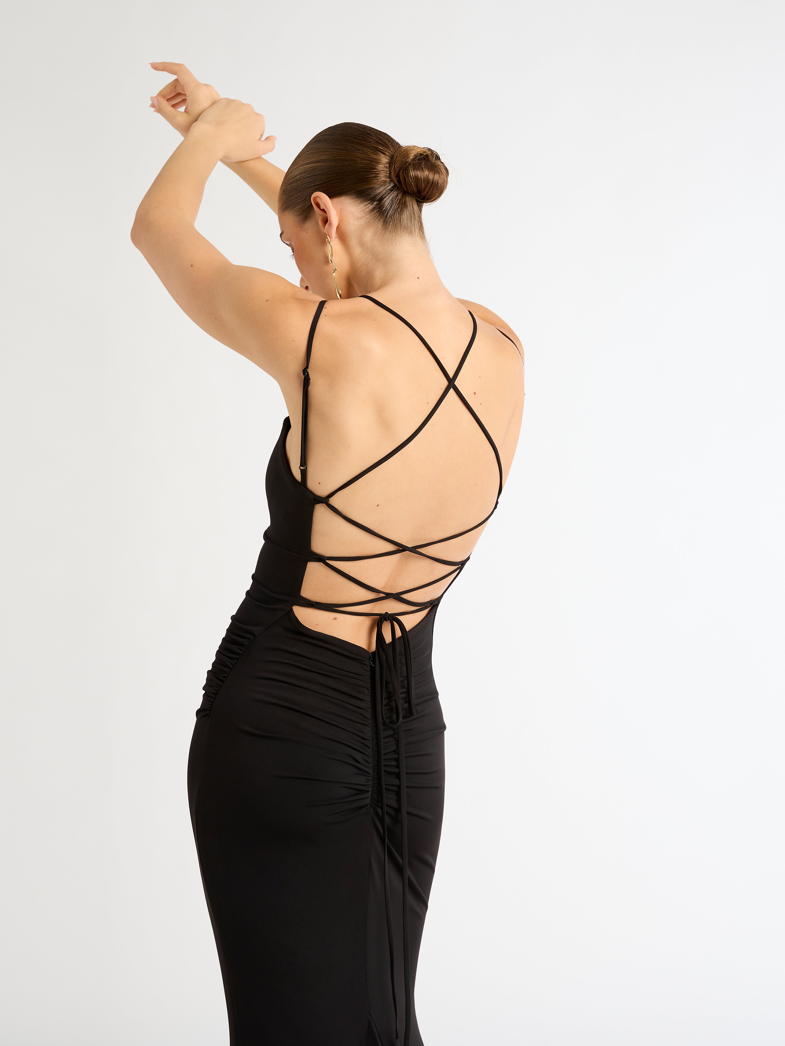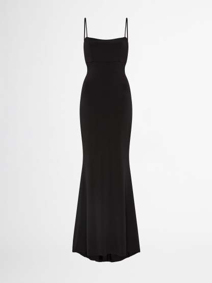 Have your moment in a timeless silhouette. Introducing the Monaco Maxi Dress - showcasing a jersey fabrication, fitted cut, thin adjustable straps and backless design with cross back closure. Pair with our Abstract Earrings to complete the look.