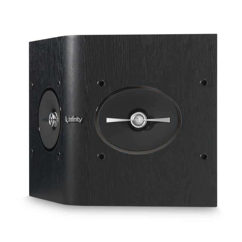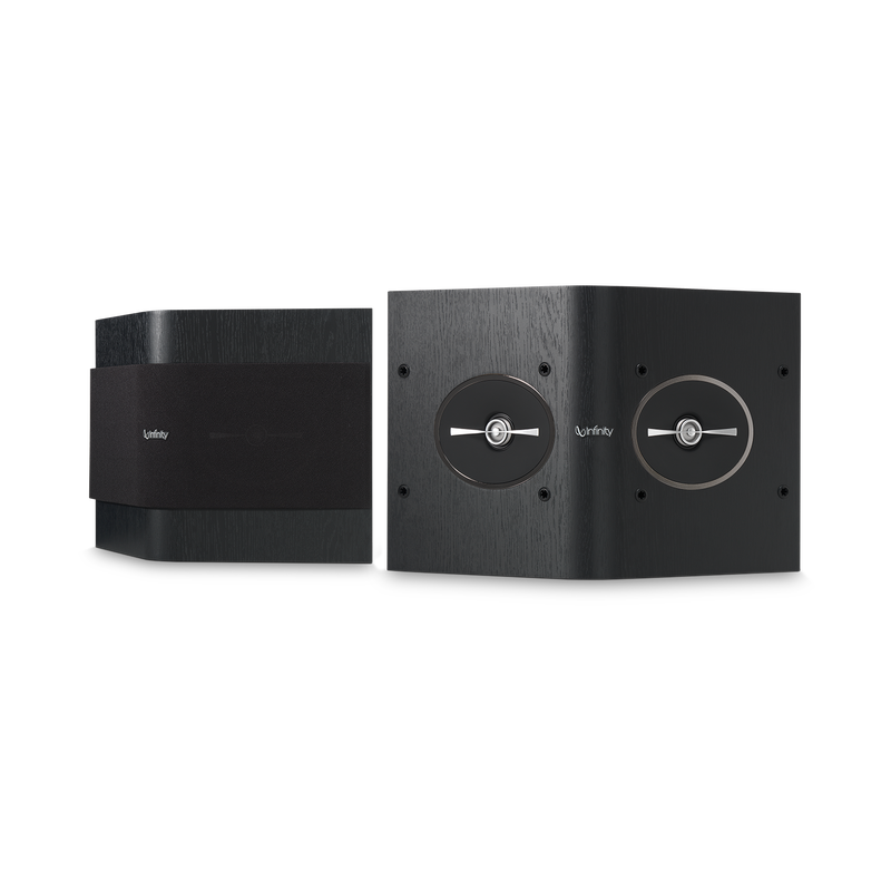 Infinitya??s engineers have developed and patented Hemispherical Soundfield Technology (HST) to eliminate the detrimental acoustical reflections typically associated with wall-mounting loudspeakers. With the HST design. a rear-facing woofer is scientifically positioned at a given distance from the wall while companion dual highfrequency drivers with advanced waveguides are each placed on either side of the angled front panels. This combination of driver positioning and waveguide pattern control provides remarkably balanced coverage across a 180-degree hemispherical listening area without the typical a??hot and colda?? frequency response inefficiencies found with mounting traditional loudspeakers on the wall. The end result is a loudspeaker with extremely flexible on-wall placement capability while maintaining consistent performance over a wide area even when listening from far off to one side.