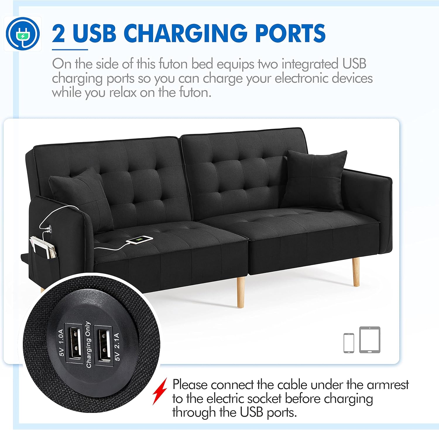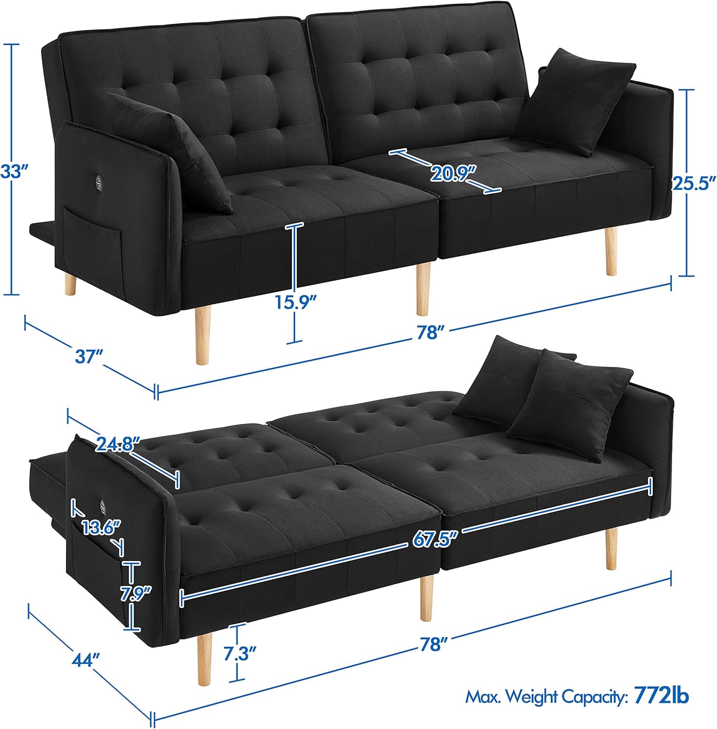 - Diseño de respaldo ajustable: la futón de la sala de estar está diseñada con un versátil ajuste de ángulo de respaldo de 3 posiciones. Un ángulo de 105 grados proporciona a tu espalda una posición ligeramente reclinada regularmente. Una posición reclinada de 140 grados podría poner menos estrés en la columna vertebral. La posición plana de 180 grados hace que el sofá sea cómodo para dormir.